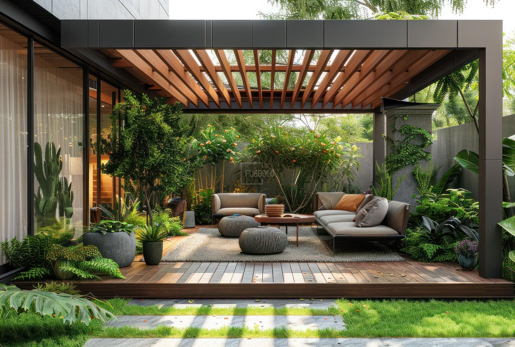 Wood and Metal Pergola – Trendy mix of materials.