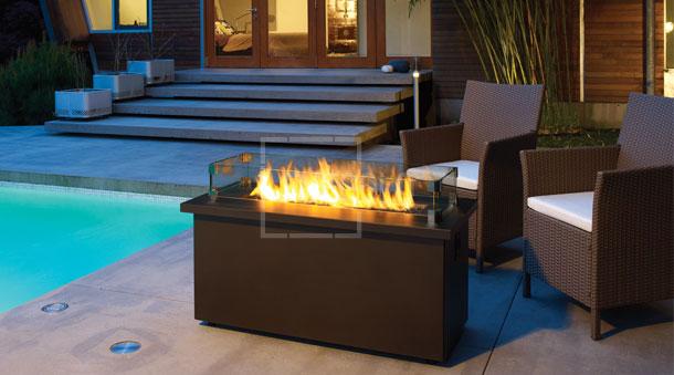 Square Propane Firepit – Square-shaped propane firepit with adjustable heat settings.