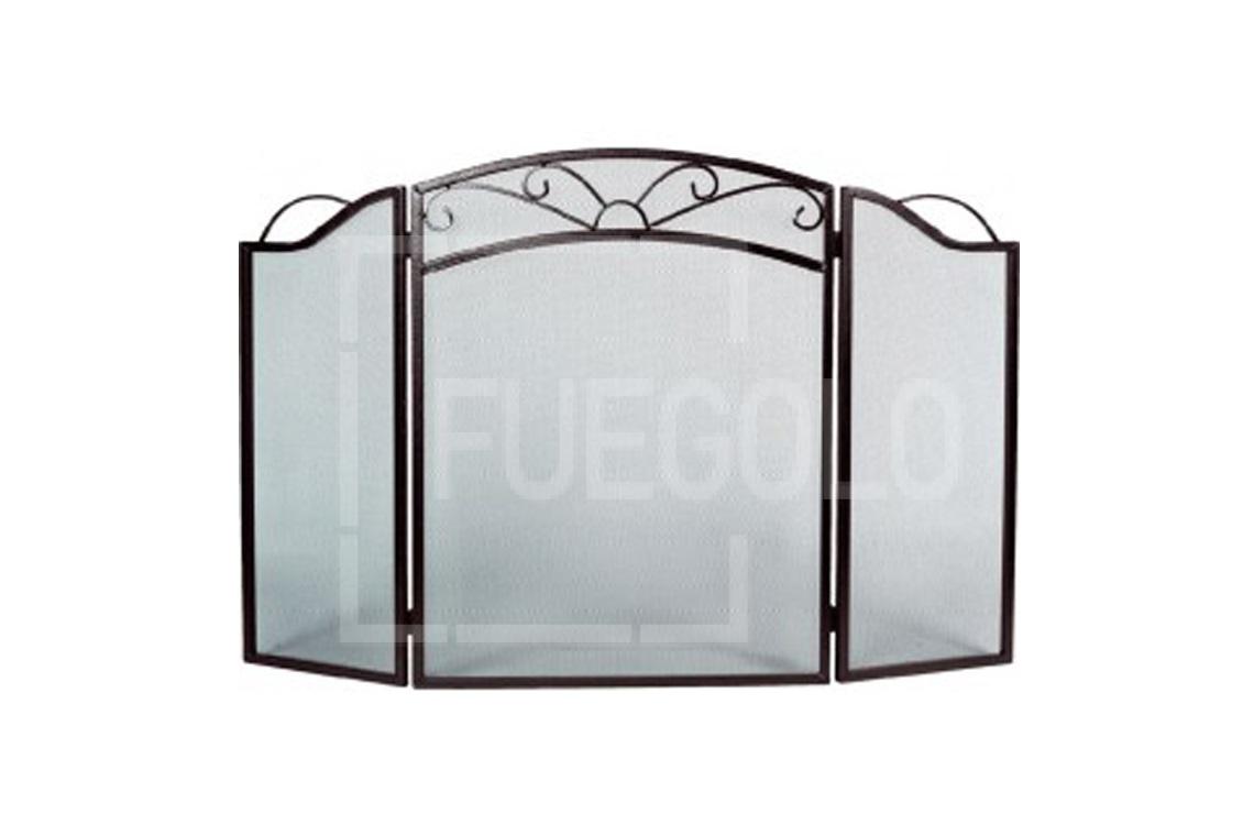 A sleek, modern wood-burning fireplace screen featuring a minimalist design with elegant black metal framing.